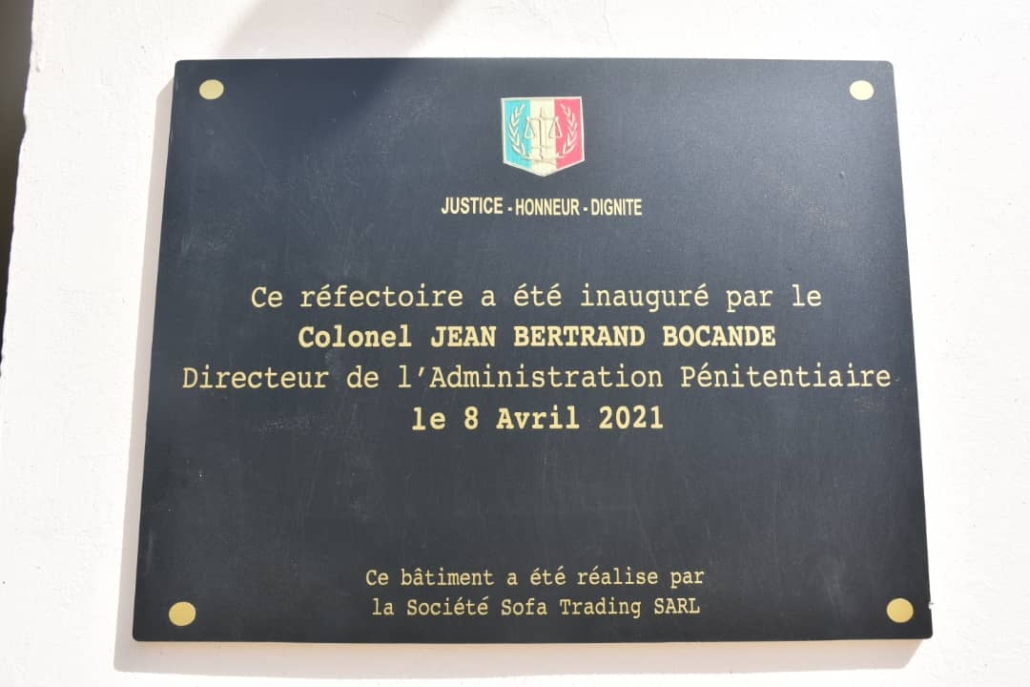 Réception des travaux du Réfectoire du Camp Pénal avec le Colonel Jean Bertrand BOCANDE de l’Administration Pénitentiaire 8 avril 2021